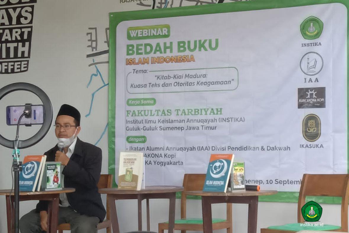 Sumenep - INSTIKA - Fakultas Tarbiyah Institut Ilmu Keislaman Annuqayah (INSTIKA) Guluk-Guluk Sumenep bekerja sama dengan Ikatan Alumni Annuqayah (IAA), Kancakonah Kopi, dan Ikatan Alumni UIN Sunan Kalijaga Yogyakarta (Ika Suka) Sumenep menggelar bedah buku “Kitab-Kiai Madura: Kuasa Teks dan Otoritas Keagamaan”.