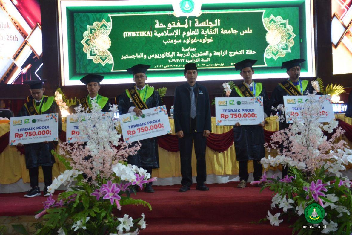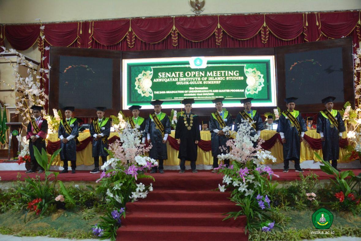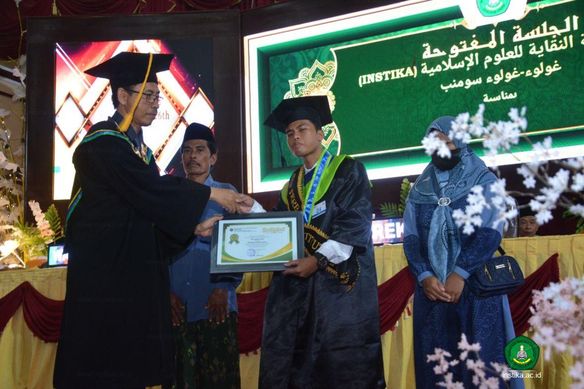 Guluk-Guluk - INSTIKA - Wisudawan terbaik 2022 mendapatkan penghargaan dari Institut Ilmu Keislaman Annuqayah (INSTIKA) Guluk-Guluk Sumenep pada Rapat Terbuka Senat, Selasa (25/10/2022), di Aula Asysyarqawi. Mereka dipanggil untuk menaiki panggung dan menerima penghargaan yang diberikan langsung oleh pimpinan INSTIKA.