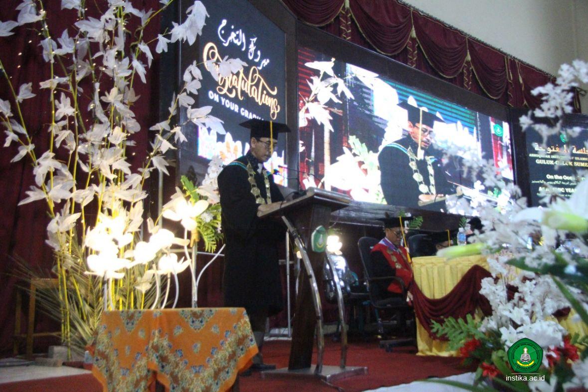 Mewakili civitas akademika INSTIKA, rektor juga menyampaikan selamat dan sukses kepada wisudawan dan wisudawati yang telah meraih gelar akademik, baik sarjana maupun magister. Rektor juga mengucapkan terima kasih kepada orang tua atau wali wisudawati yang hari ini turut berbangga dan berbahagia menyaksikan keberhasilan putra-putrinya menyelesaikan studi sesuai jenjang dan programnya masing-masing. “Semoga segenap ikhtiar yang telah diupayakan oleh Bapak dan Ibu selama memberikan dukungan bagi para putra-putrinya akan tercatat sebagai amal kebajikan dan mendapatkan balasan yang lebih baik dari Allah SWT,” ujarnya.