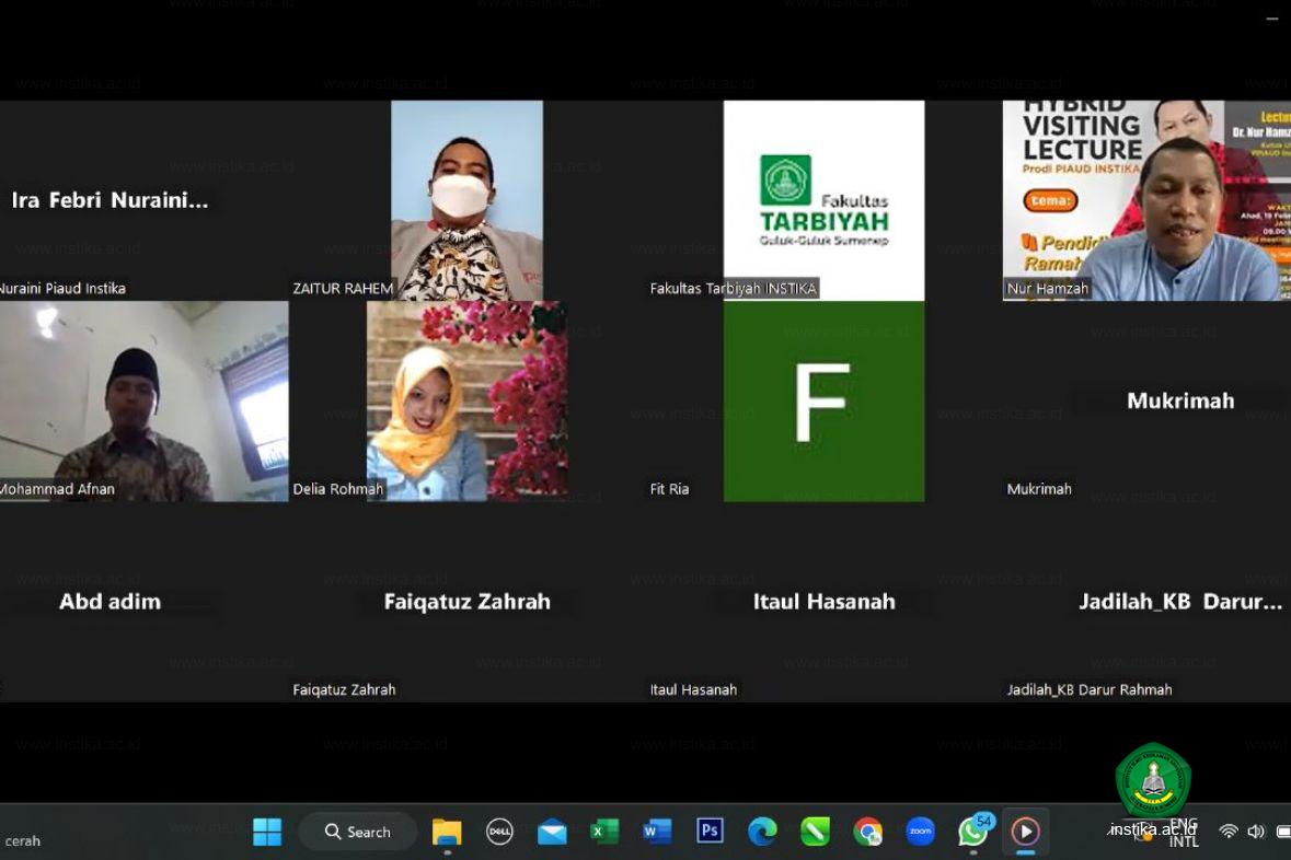 Guluk-Guluk - INSTIKA - Mahasiswa perlu mendapatkan pengalaman keilmuan dari dosen di luar institusinya. Sehubungan dengan ini, program studi Pendidikan Islam Anak Usia Dini (PIAUD) Fakultas Tarbiyah Institut Ilmu Keislaman Annuqayah (INSTIKA) Guluk-Guluk Sumenep menggelar Hybrid Visiting Lecture, Ahad (19/02/2023), di Hybrid Meeting on Zoom dan di Lab PAUD bagi mahasiswa yang berdomisili di pondok.