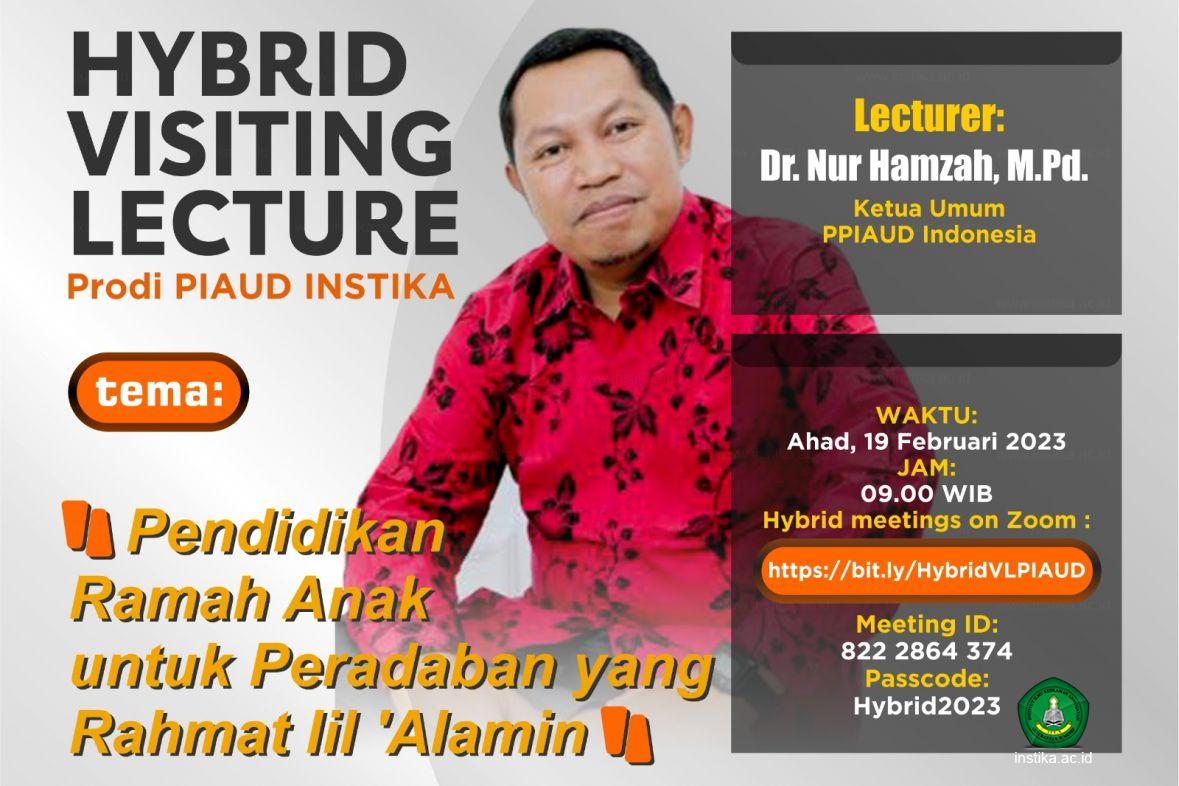 Kaprodi PIAUD INSTIKA menjelaskan lebih jauh, Hybrid Visiting Lecture adalah program kerja Prodi PIAUD tahun 2023 yang akan dilakasanakan rutin selama 1 tahun kedepan. Ada 5 dosen tamu yang akan diundang secara berkala.