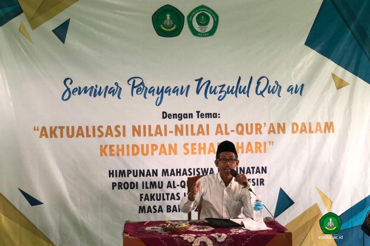 Perayaan Nuzulul Qur'an itu diisi dengan seminar bertema "Aktualisasi Nilai-nilai Al-Qur'an dalam Kehidupan Sehari-hari." Acara ini merupakan salah satu program kerja HMP IQT divisi Pendidikan.