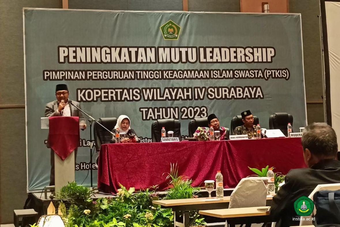 Surabaya - INSTIKA - Dalam rapat pimpinan Perguruan Tinggi Keagamaan Islam Swasta (PTKIS) dalam rangka peningkatan mutu leadership pimpinan PTKIS Kopertais Wilayah IV Surabaya, Rabu sampai Jumat (14-16/06/2023) di Hotel Harris Surabaya, Sekretaris Koordinator Kopertais Wilayah IV Surabaya, Dr. H. M. Hasan Ubaidillah, S.H., M.Si., mengangkat isu-isu penting pengembangan PTKIS.