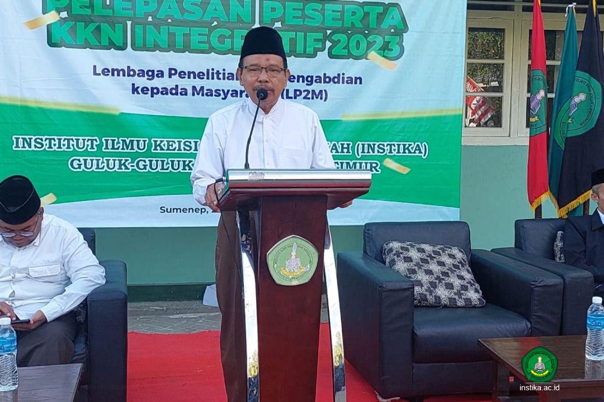 Guluk-Guluk - INSTIKA - Pelepasan peserta Kuliah Kerja Nyata (KKN) Integratif 2023 Institut Ilmu Keislaman Annuqayah (INSTIKA) Guluk-Guluk Sumenep dihadiri pengasuh pondok pesantren Annuqayah, Drs. KH. Syafii Anshori, Selasa (22/08/2023), di halaman rektorat INSTIKA.