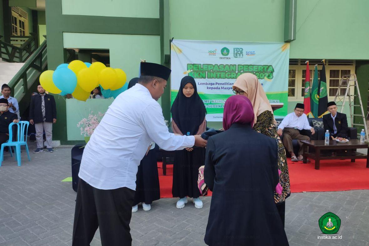 Guluk-Guluk - INSTIKA - Lembaga Penelitian dan Pengabdian kepada Masyarakat (LP2M) Institut Ilmu Keislaman Annuqayah (INSTIKA) Guluk-Guluk Sumenep melaksanakan pelepasan peserta Kuliah Kerja Nyata (KKN) Integratif 2023 putri, Selasa (22/8/2023), di halaman rektorat INSTIKA.