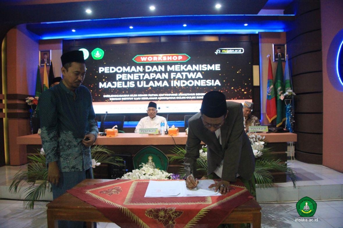 Bentuk kerja sama awal dengan Komisi Fatwa MUI Jatim itu adalah Workshop Pedoman dan Mekanisme Penetapan Fatwa MUI. Workshop ini dilaksanakan setelah penandatanganan MoU antara INSTIKA dengan Komisi Fatwa MUI Jatim.