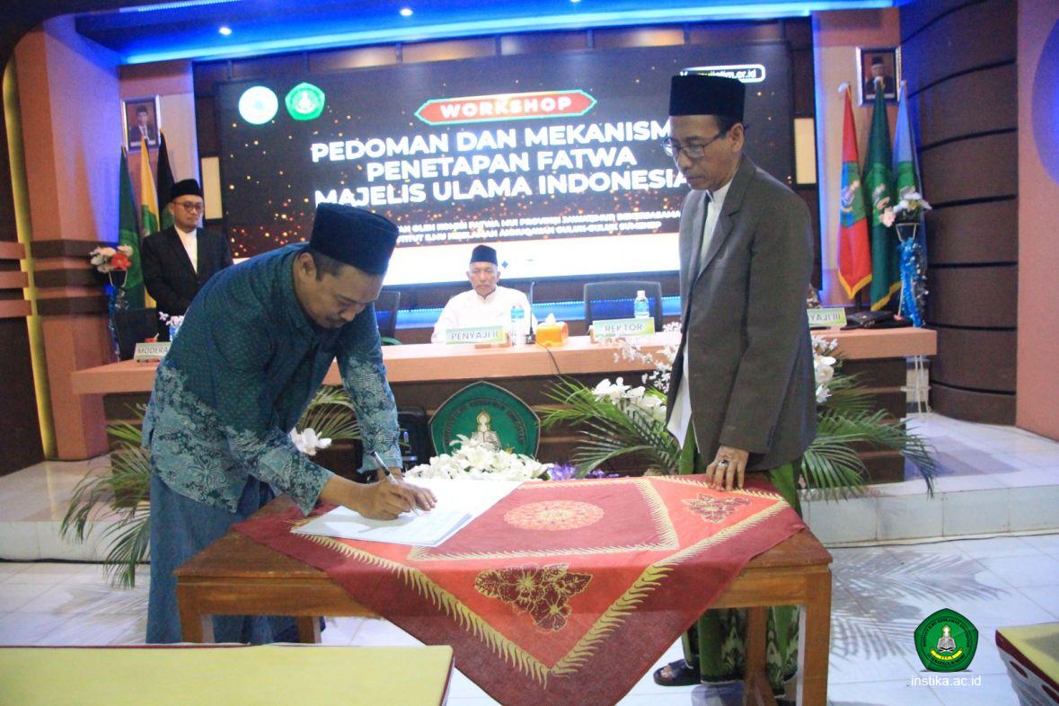 Secara resmi kerja sama itu dilakukan dengan penandatanganan Memorandum of Understanding (MoU) antara pihak INSTIKA dengan Komisi Fatwa MUI Jatim, Rabu (30/08/2023) di Aula Kiai Abdul Basith AS INSTIKA. Dari pihak INSTIKA yang menandatangani adalah Rektor Drs. KH. Ah. Syamli, M.Pd.I. Sementara dari Komisi Fatwa MUI Jatim adalah KH. Ma'ruf Khozin selaku Ketua Komisi Fatwa MUI Jatim.