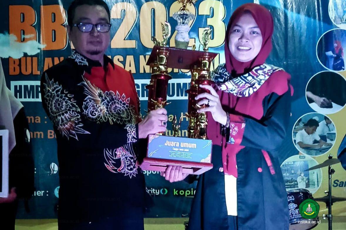 Sumenep - INSTIKA - Elmira Damayanti (mahasiswa Institut Ilmu Keislaman Annuqayah (INSTIKA) Guluk-Guluk Sumenep) meraih Juara Umum dalam lomba Baca Puisi tingkat umum se-Jawa Timur pada Bulan Bahasa Nasional, Sabtu (28/10/2023) di Sekolah Tinggi Keguruan dan Ilmu Pendidikan (STKIP) Persatuan Guru Republik Indonesia (PGRI) Sumenep.